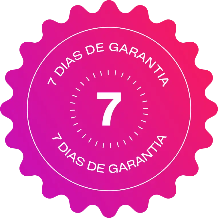 Sua satisfação é nossa prioridade, por isso te damos 7 dias para testar o curso e se não gostar ou achar que não é para você, basta pedir o reembolso que devolvemos 100% do seu investimento.